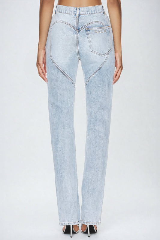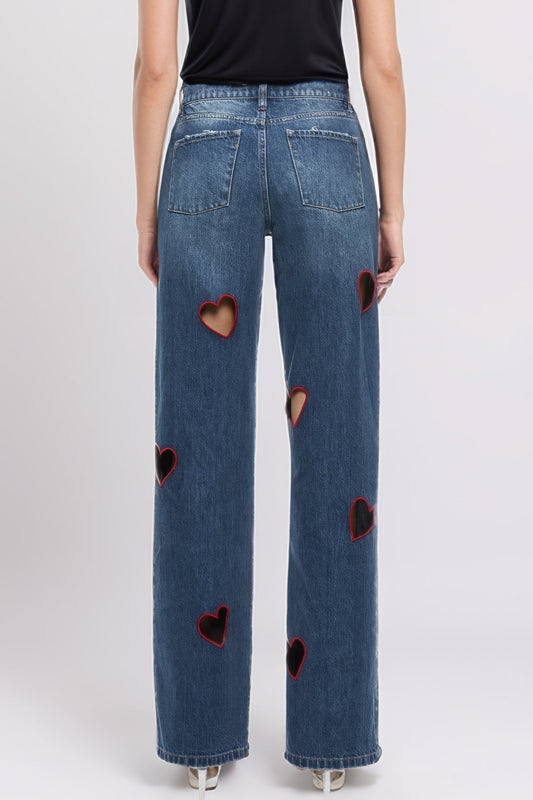 High-Waisted Heart-Detail Denim Jeans - Blue