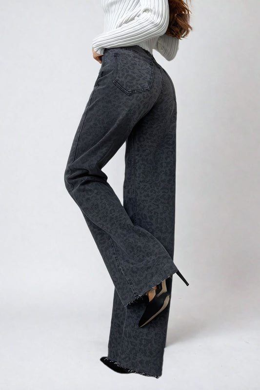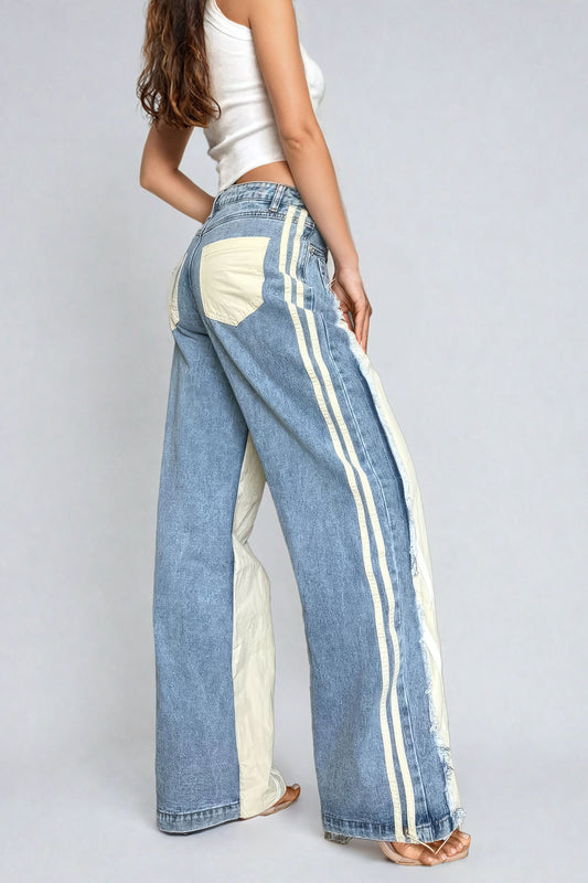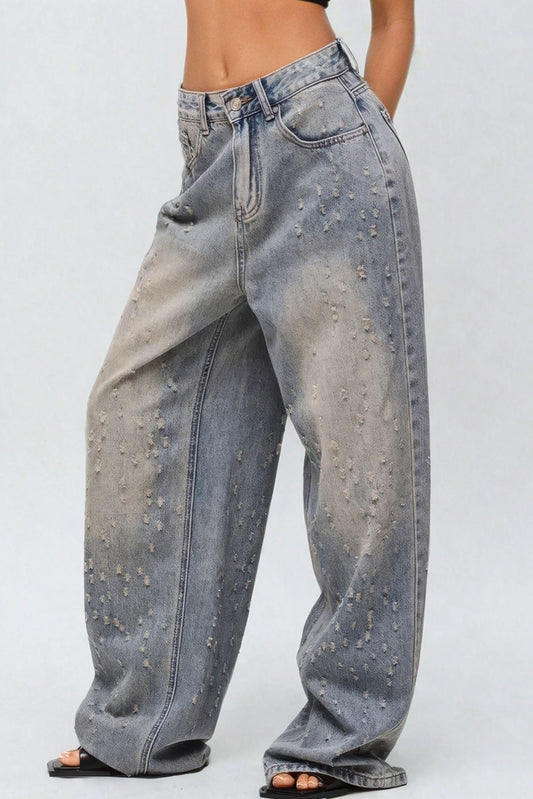 Wide-Leg Jeans with Splatter Paint Accent - Blue