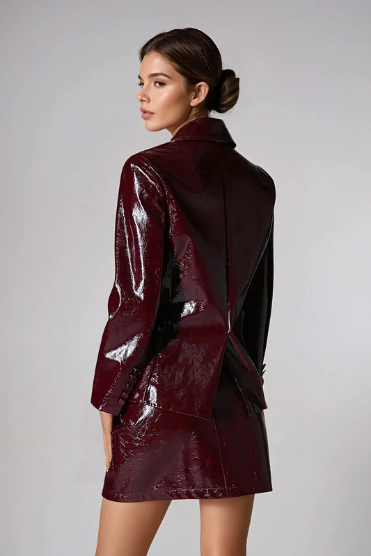 Two-Piece Set with Blazer and Mini Skirt - Maroon