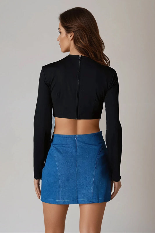 Two-Piece Set with Long-Sleeve Crop Top and Mini Skirt - Blue
