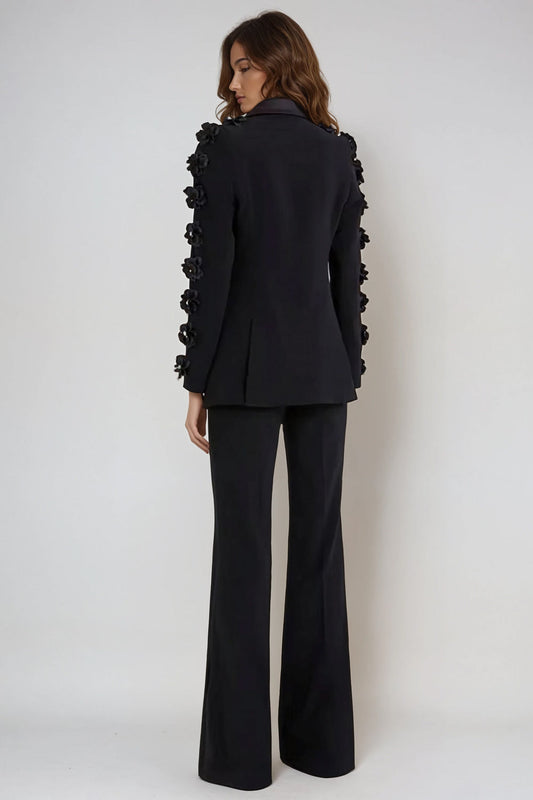 Two-Piece Set with Embellished Blazer and Flared Trousers - Black