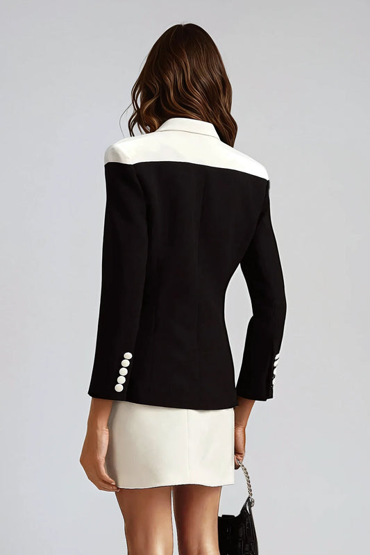 Two-Piece Set with Contrasting Blazer and Mini Skirt - Black