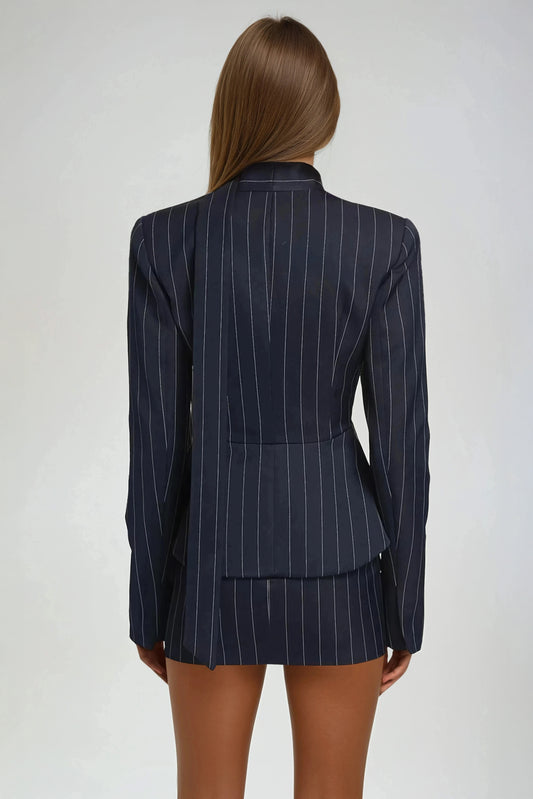 Pinstripe Tailored Blazer & Skirt Set - Navy Blue