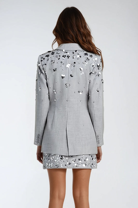 Two-Piece Set with Embellished Blazer and Skirt - Gray
