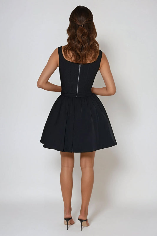 Two-Piece Set with Embellished Top and Pleated Skirt - Black