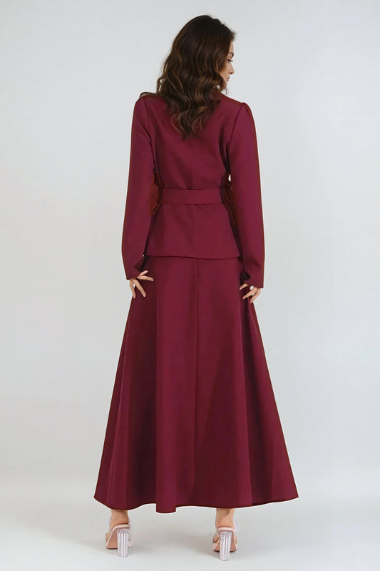 Two-Piece Set with Long Sleeve Buttoned Jacket and Flared Maxi Skirt - Red