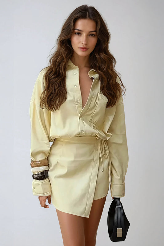Two-Piece Set with Oversized Shirt and Wrap Skirt - Yellow