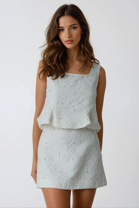 Two-Piece Set with Textured Top and Mini Skirt - White