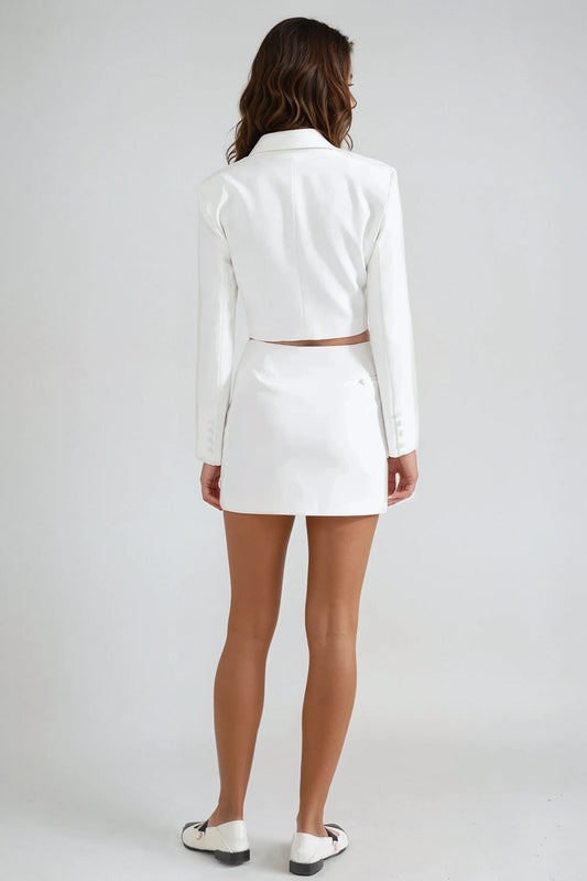 Two-Piece Set with Cropped Blazer and Mini Skirt - White