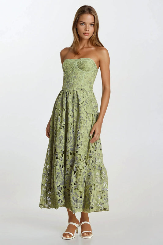 Two-Piece Set with Lace Tube Top and Midi Skirt - Green