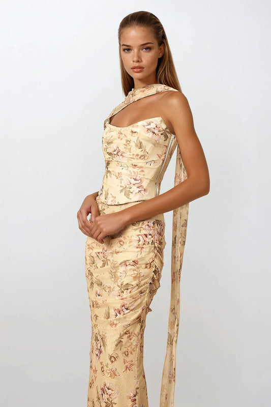 Two-Piece Set with Draped Halter Top and Maxi Skirt - Yellow
