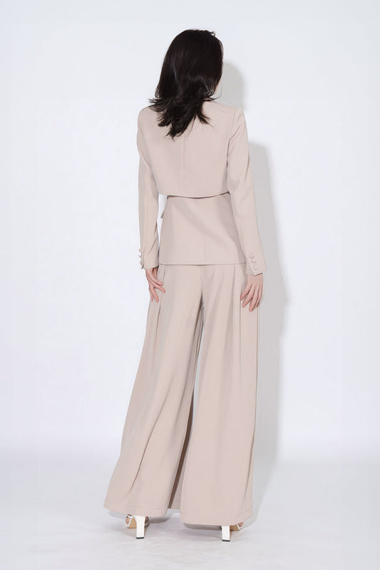 Stylish Blazer and Wide Leg Trousers Set - Beige