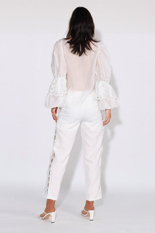 Lace Blazer Top and Wide Leg Trouser Co-Ord Set - White