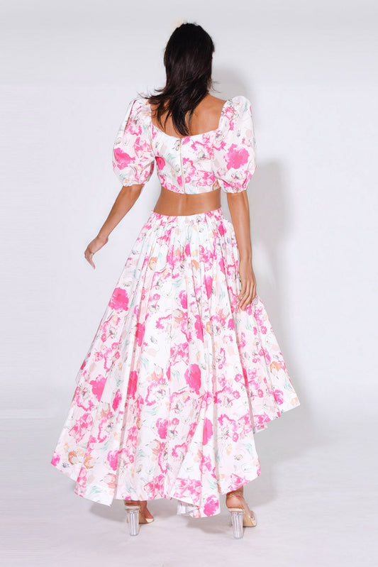 Two-Piece Set with Floral Cropped Top and Pleated Skirt - Pink