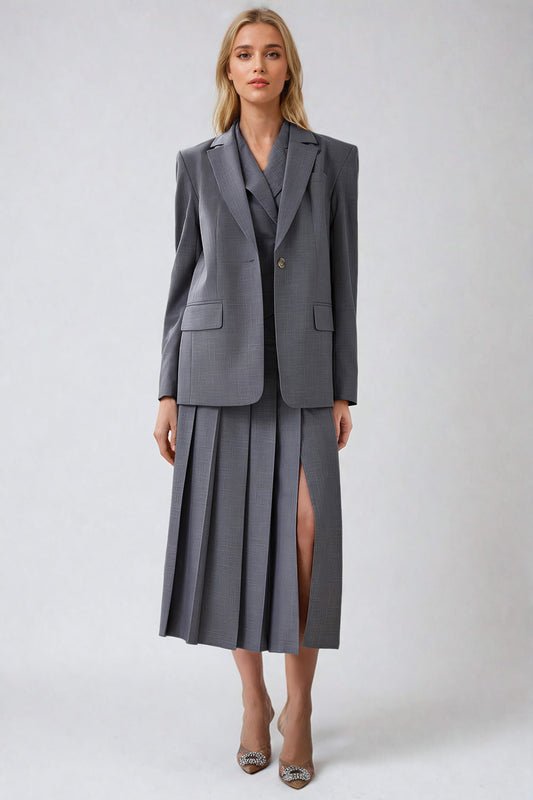 Two-Piece Set with Vest and Pleated Skirt - Gray