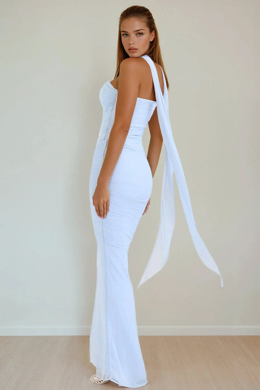 Two-Piece Set with Strapless Ruched Top and Flared Maxi Skirt - Light Blue