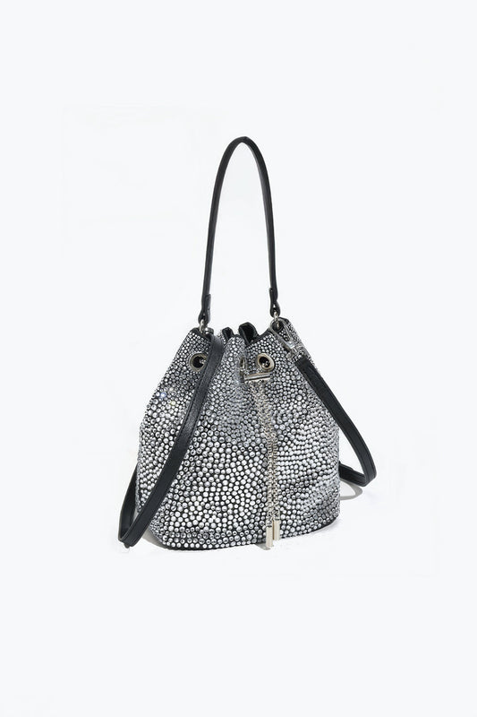 Rhinestone Drawstring Bucket Bag with Shoulder Strap