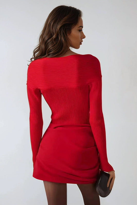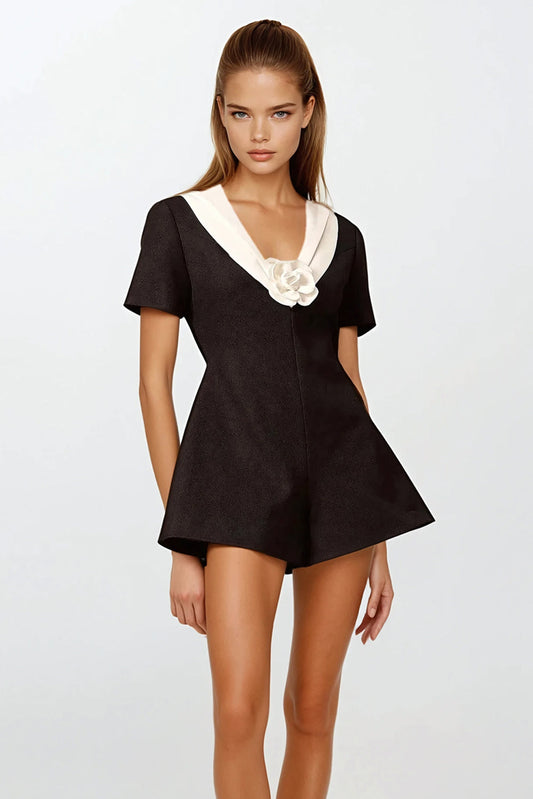 Two-Piece Set with Embellished Long Sleeve Top and Mini Skirt - Black