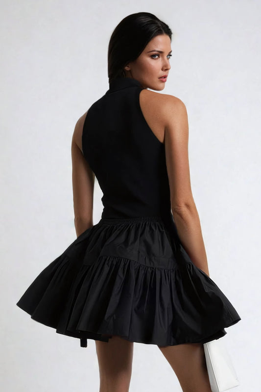 Ruffled Tiered Mini Skirt with Elastic Waist - Black