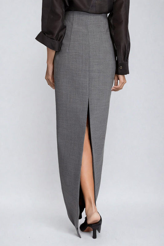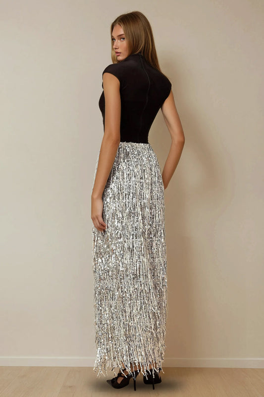 Maxi Skirt with Beaded Fringe Detailing - Silver