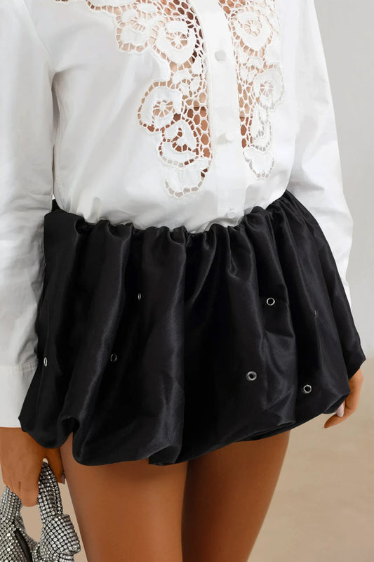 Bubble Skirt with Eyelet Details and Lace-Up Front - Black
