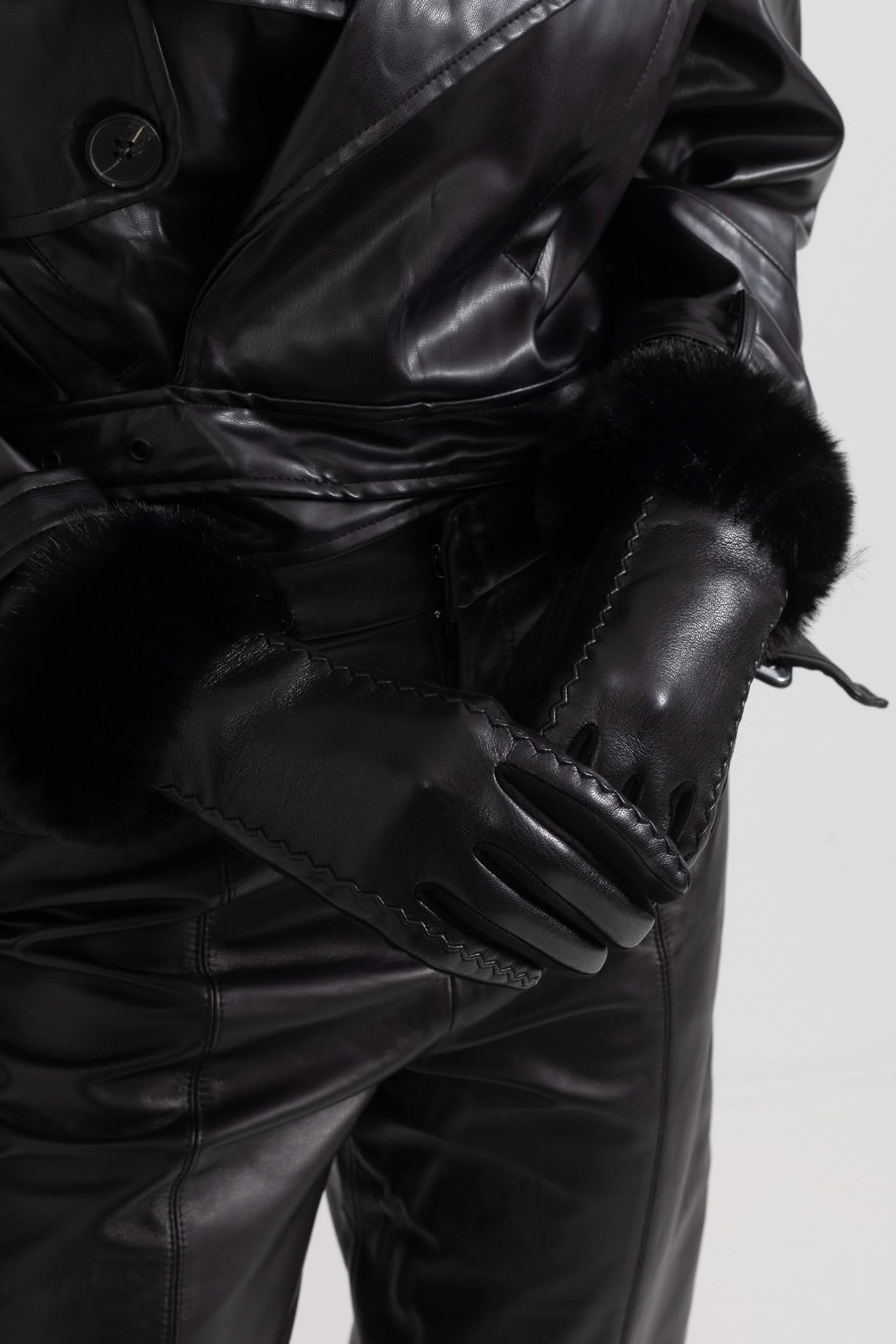 Elegant gloves crafted with fine leather and finished with soft fur trim at the wrist.